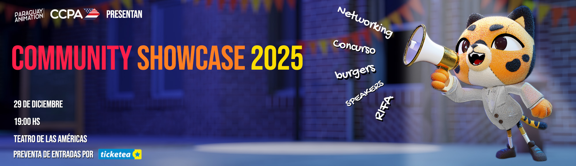 En alianza con el Centro Cultural Paraguayo Americano (C.C.P.A), Paraguay Animation se enorgullece de anunciar el encuentro anual de la comunidad de animadores del Paraguay, Community Showcase 2025. El enfoque central de este evento es nuestra comunidad. En el Teatro de las Américas, miembros de Paraguay Animation pasarán al escenario a compartir sus logros de este año: proyectos realizados, aprendizajes, pitch de corto o largometrajes, trabajos profesionales, demo reels y mucho más. Como speakers de honor tendremos a Tucán Studios, un estudio de animación con talento 100% paraguayo. Tucán compartirá un “detrás de cámara” exclusivo, mostrando cómo realizaron importantes proyectos animados este año Al final de las charlas, proyectaremos los trabajos entregados para el Concurso de Bumpers. Consiste en crear una animación corta con Jagui, la mascota de Paraguay Animation, realizando una actividad de verano. El ganador se llevará un kit de realidad virtual Oculus Rift. Para la segunda parte de la velada, pasaremos al patio donde compartiremos una rica cena mientras nos conectamos con conocidos y también hacemos amigos nuevos dentro de la comunidad. Alentamos a los asistentes a traer sus tarjetas de presentación para repartirlas y hacer networking. Por último, el evento terminará con la tradicional rifa de libros de arte, posters, arte original y muchas sorpresas. El Community Showcase será el lunes 29 de diciembre a las 19:00 hs en el C.C.P.A sede Avda. España. La preventa de entradas es únicamente a través de Ticketea. La entrada incluye un ticket de rifa, y un vale para la cena. Habrá una entrada VIP, que también incluye una remera exclusiva. Para más información, ingresar a www.paraguayanimation.com/showcase |